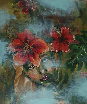 Acryl Leinwandgewebe auf Holz mit Rahmen.